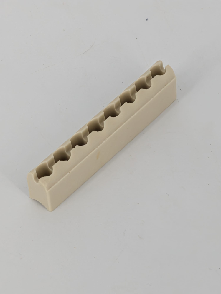 The 8-hole ceramic support with slot is designed for guiding and fixing resistance wire in industrial heating applications. The slot allows quick insertion of the wire without threading it fully through the holes, significantly reducing installation and maintenance time.