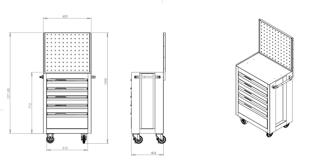 7 drawer tool trolley with panel for workshop and industrial use.