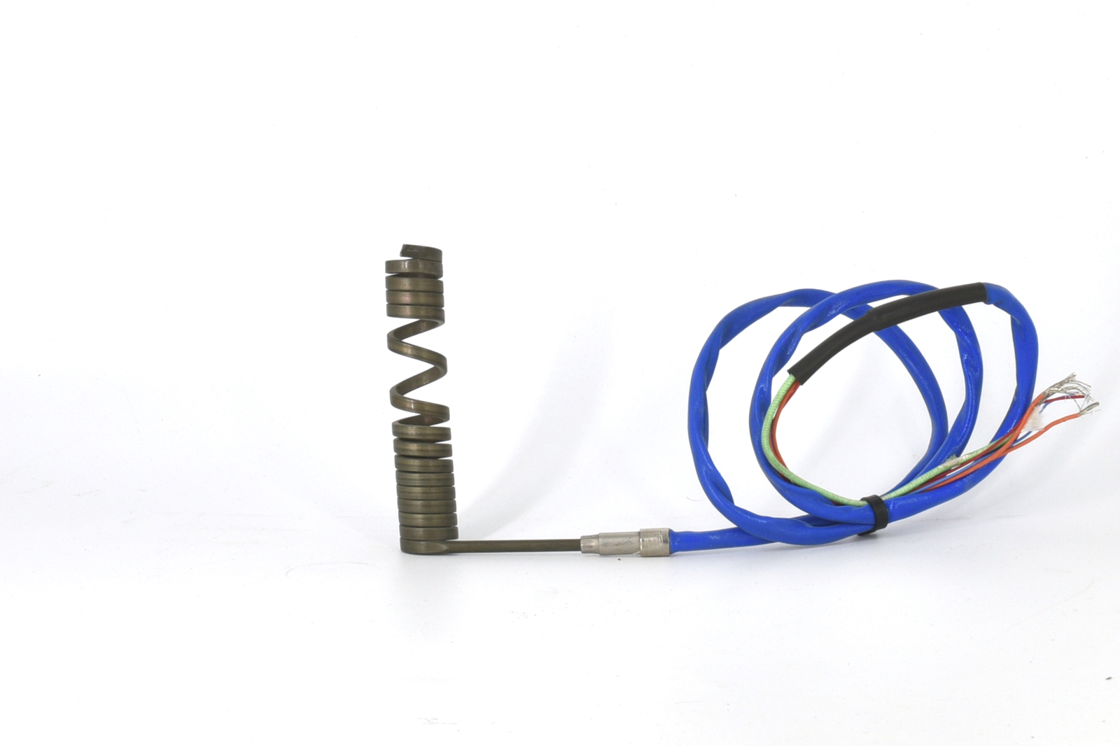 Rezistență microtubulară spiralată 1000W, 230V, cu termocuplă tip J – soluție compactă pentru control precis al temperaturii.